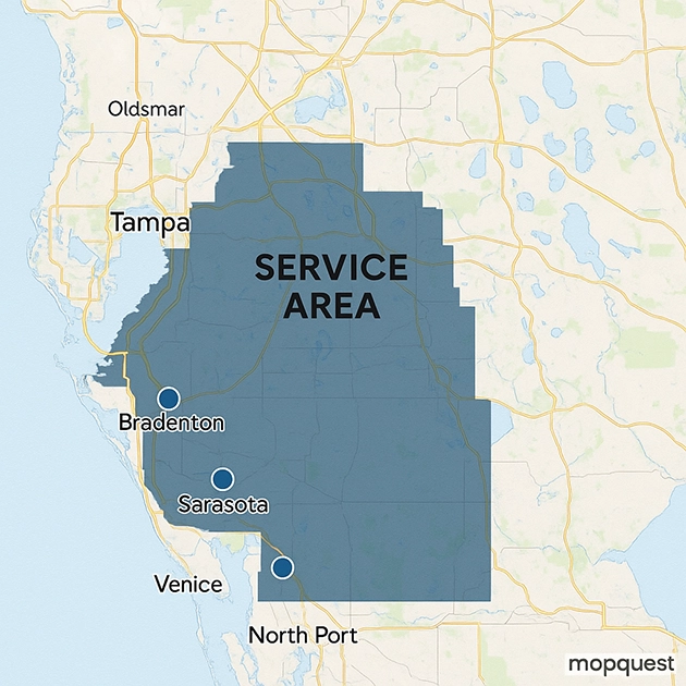 We proudly serve a wide service area across Florida. The map below highlights the primary regions where our team operates, providing fast response times and guaranteed quality workmanship. If your location falls outside our standard service area, donβt worry β depending on the project and distance, we can often accommodate special requests. Our goal is simple: to ensure every Florida homeowner who needs our services receives the expert care they deserve.